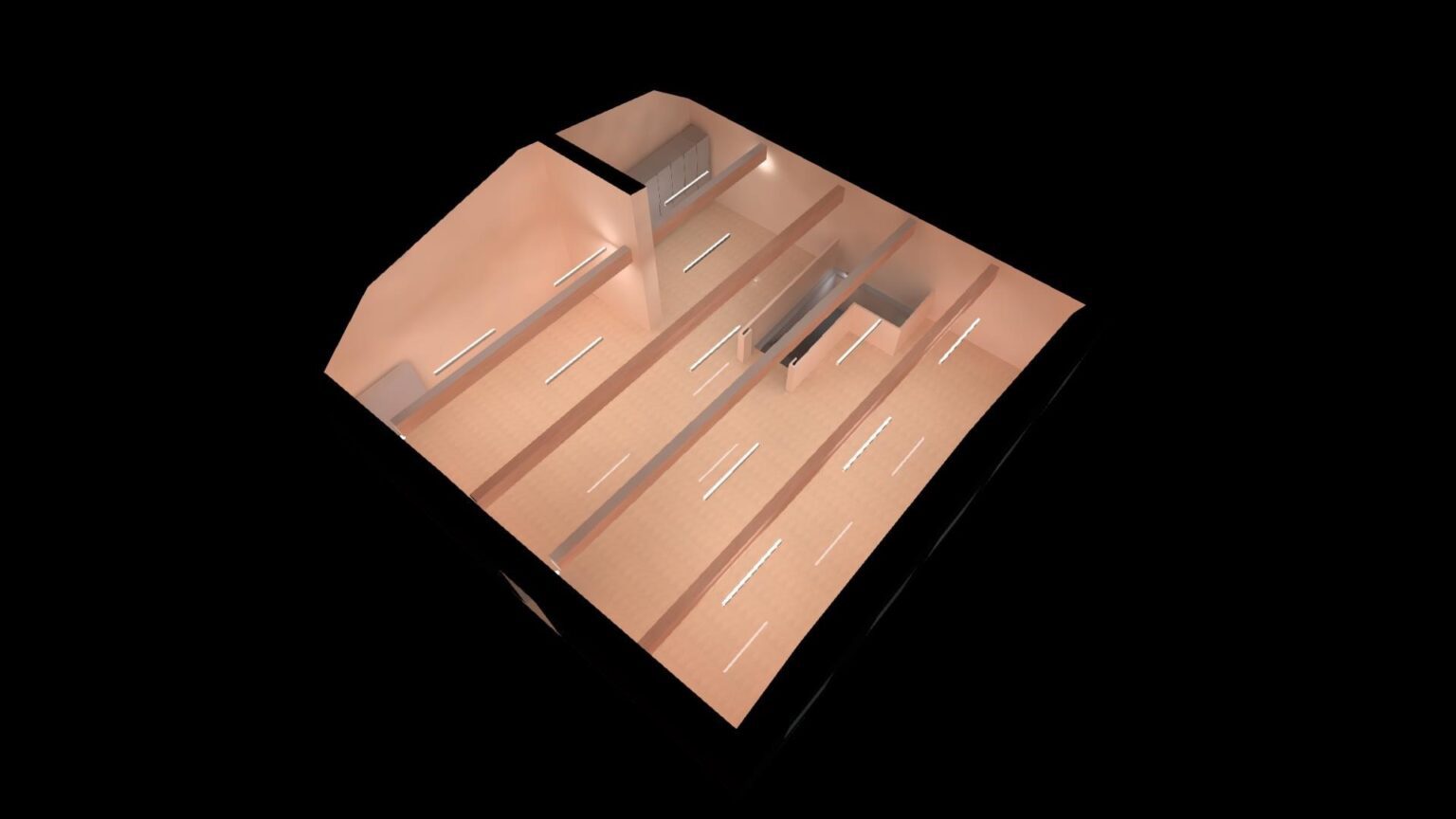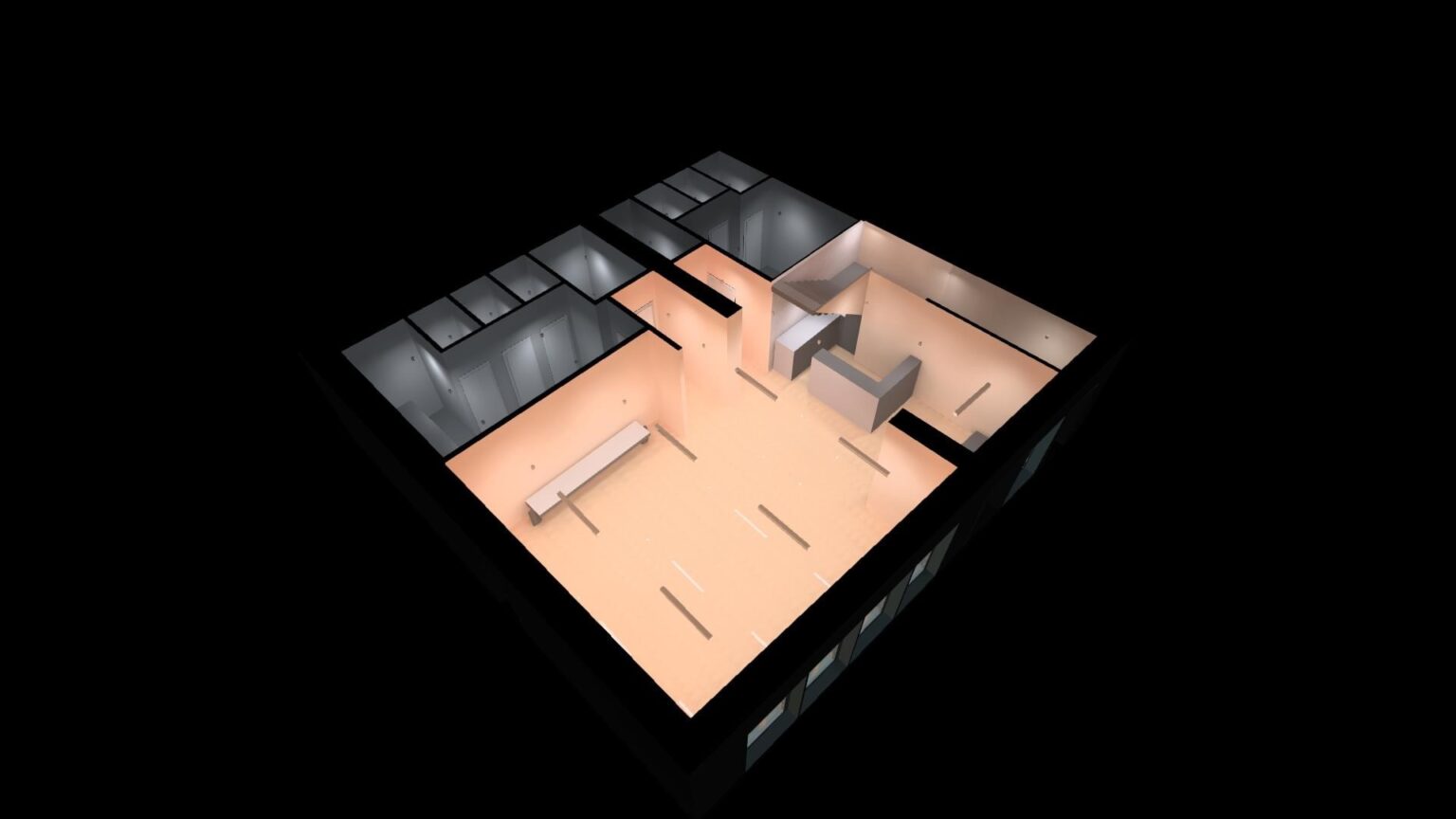 Lighting design chosen was very simple. In order to check if the luminaires were suitable and gave enough light in the studio, I applied some basic textures to the surfaces. Textures chosen were talked through with the client in order to know a preliminary interior design.